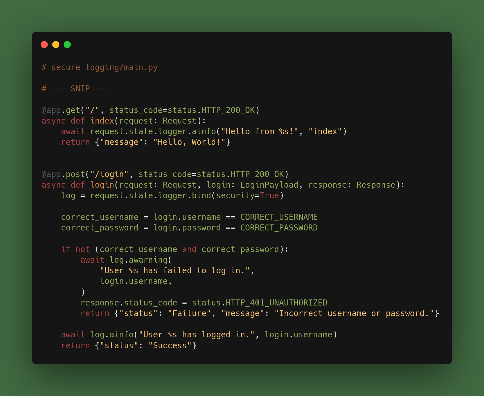 In this part, we looked at actually implementing secure logging with Structlog in FastAPI. Next time, we’ll look at automating the testing of your logs, as well as deploying them to production!